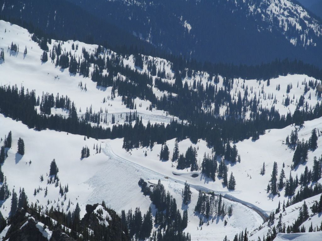 Today I had to close Chinook for the afternoon due to an avalanche. Investigation revealed it was caused by two skiers side-slipping their way into a steep avalanche path above the highway. They likely realized their mistake, traversed out of the path and then side-slipped again, only to cause a second slide. We can't take any chances, so I brought in additional crew and performed more ski cutting and such.