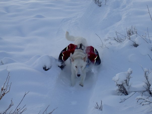 One other thing I'm starting to consider is how to self-rescue my dog, should he get injured out on a tour, considering the gear that I'm carry. For smaller breeds, I guess you just put 'em in your pack and ski out but for my dog, that's not an option. Also, as the snowpack consolidates, my dog moves faster than in deep powder and his paws can get dinged by ski edges, ice, rocks, etc. So adding to the other pre-reqs, I like having good voice control over my K9 like Stop or go Left/Right especially when skiing with other partners.