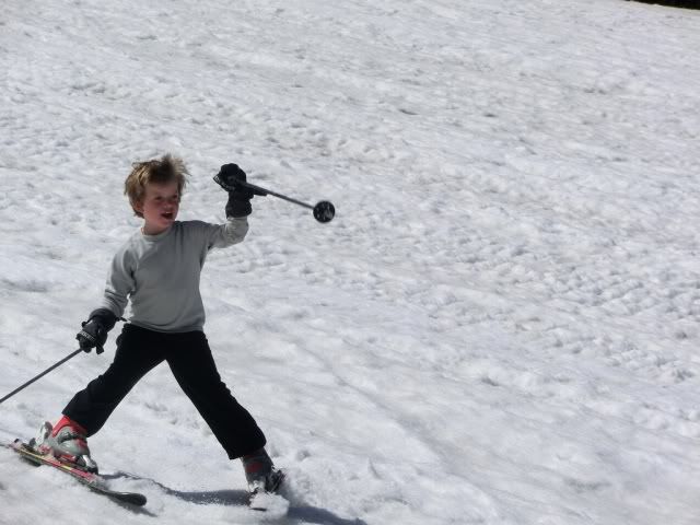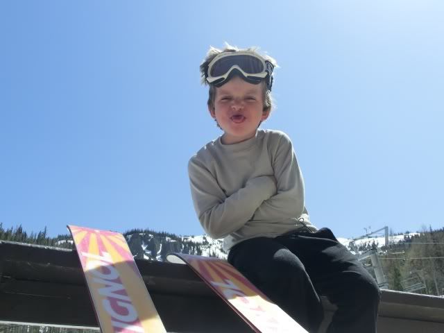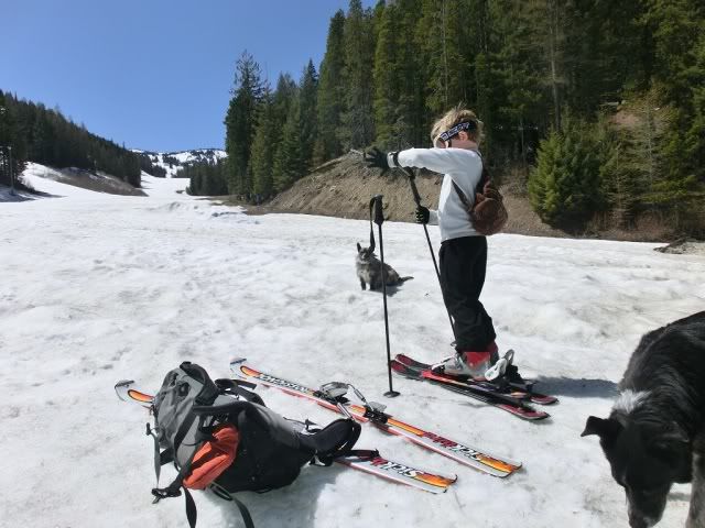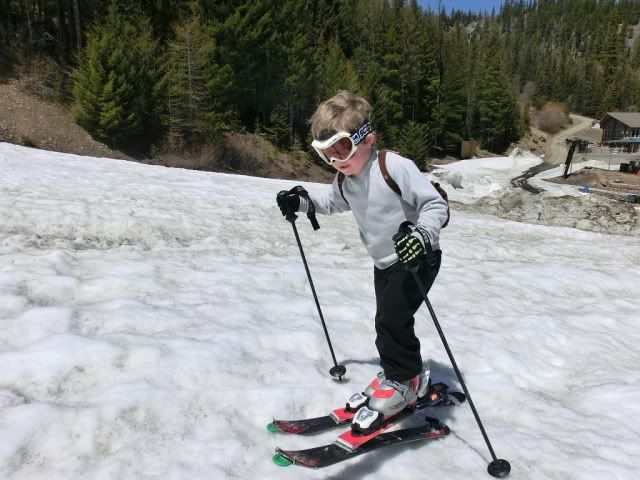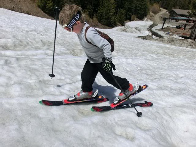 It works! My boy figured out the stride almost immediately. I hadn't considered shortening an old pair of AT bindings. Thanks Mofro for the idea. I'll try that for my daughter. Previous ski-hike outings with my kids have been walk ups for them, with gear on my back. Today Tag started out with his skis on his feet, but around half way up the bunny hill, we had a sit-down rest and then his skis went on my pack for the rest of the up. I think for little kids, it makes more sense to carry their gear if the snow is firm. The binding system seemed to ski just fine. It took us about an hour to walk up the bunny hill to Midway. Tag had a blast and is proud of himself for "skinning up to midway".