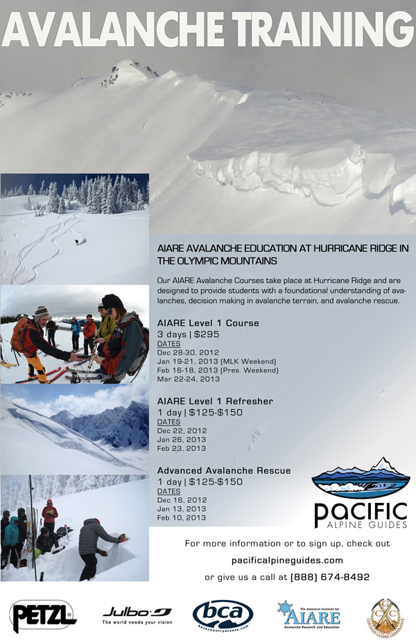 Once again this winter we'll be running a number of AIARE avalanche training programs at Hurricane Ridge. If you've never skied in the Olympic Mountains, this is a great opportunity to check out some of the best road accessed terrain in the state.