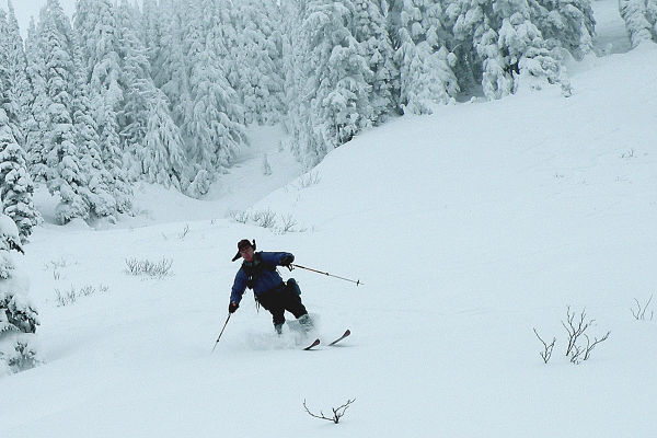 Yeah, I told you so! Look at Robie skiing powder on skinny skis--all he had to do is lift his toes a bit