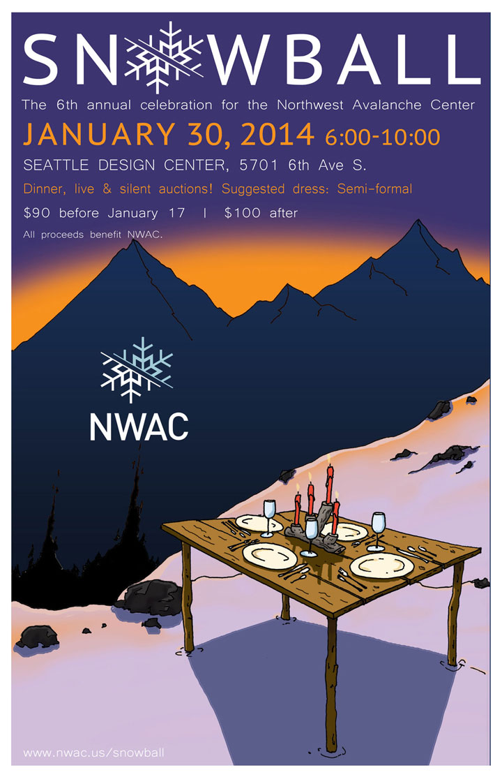 to mid-winter while the snow is still flying…Thursday, January 30! Join your friends and familiar faces at this evening of live and silent auctions, as well as a delicious dinner, all in support of the Northwest Avalanche Center!