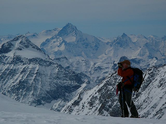 Heal up Timmy! Back to CH we go! Tim on his 69th birthday at 11,670' Col de Valpelline on the Swiss/Italian border.