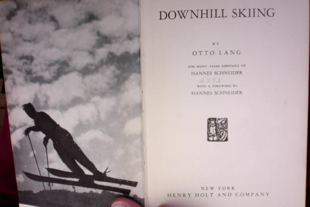 I was doing some clean up in the basement and came across a copy of Downhill Skiing by Otto Lang. Copyright 1936, liberated from the Lyden High School library in 1940 by one of my uncles who possible knew Otto when he was teaching at Mt Baker. Passed down to my mom who used the book to learn to ski, also at Mt Baker, it's been sitting in a box since '95. If someone would like to give this book a good home, let me know. I'd rather someone preserve it than let it get lost or eBay it.