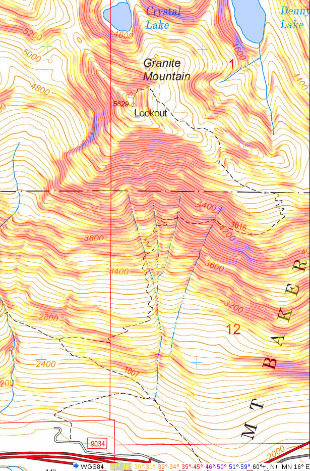 I have a memory of an avalanche from those south slopes of Granite reaching I-90 during the '70s -- I think it is slope to avoid, except under exceptionally favorable conditions.