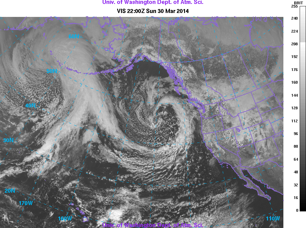 A nice looking system as seen in this visible satellite image from 3pm PDT Sunday while the system was still off the West Coast and heading southeastward: