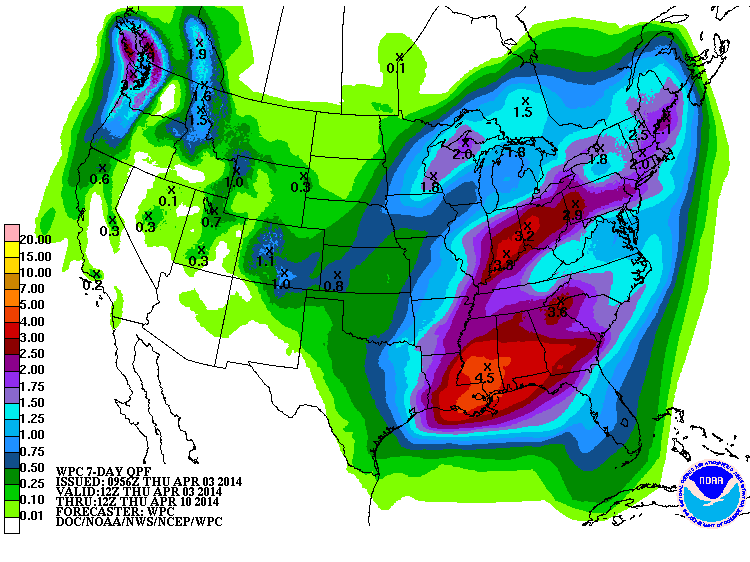 with an additional 1-3 ft still predicted over that region during the first week of April!