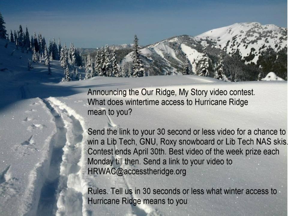 Announcing the Our Ridge, My Story video contest. What does wintertime access to Hurricane Ridge mean to you?