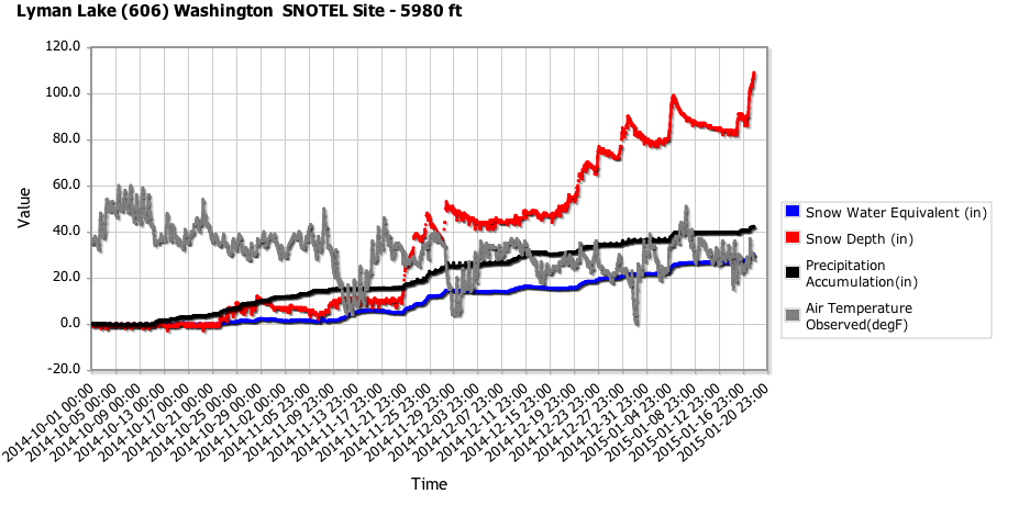 Lyman Lake SNOTEL hits 100" snowdepth!?! 05Jan2015