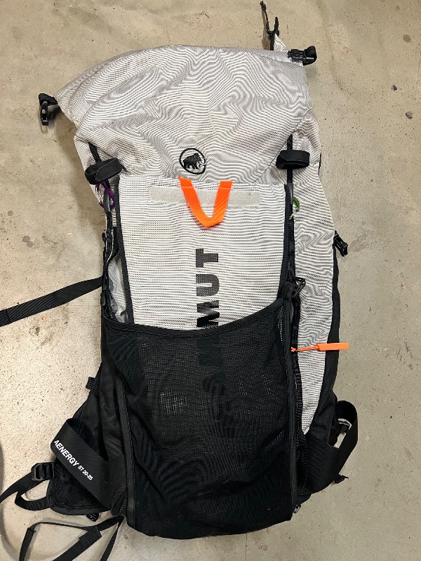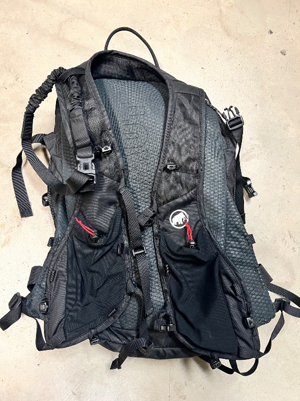 Used but in good shape vest style Mammut Aenergy ST 20-25 ski pack. Versatile, comfortable, lightweight well-thought out pack. Roll top, back panel access, separate avy compartment, quick ski carry system and deployable helmet net. $40+ship