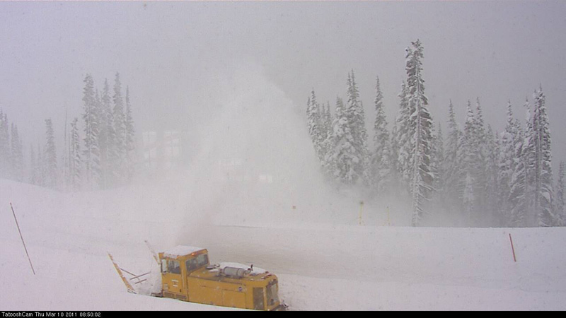 The road up to Paradise remained closed to the public all day though, so the 200" celebration party must have been a lonely one. Some webcam images of snow plowing operations today at Paradise: