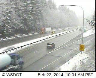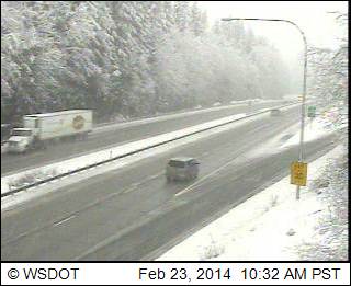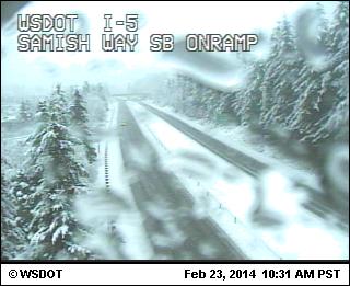 There was a bigger dose of lowland of snow in northwestern Washington overnight and this morning than on Saturday morning, with amounts up to a few inches this time. Definitely more snow and much more continuous snow on these same 3 webcams than yesterday, along I-5 from MP 258 to 246 near Bellingham (elevations of these webcams are about 200 ft, 200 ft, and 560 ft at I-5 at Lake Samish Park and Ride in the last image):