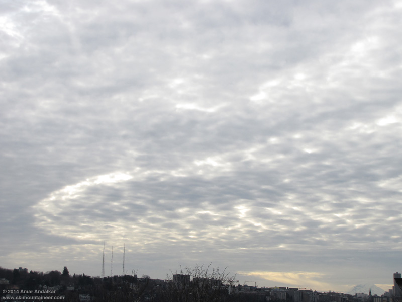 [size=small]Mount Rainier producing a fallstreak hole in an altocumulus cloud deck advancing from the southwest, as seen from my deck in Seattle, 9:00am February 25.[/size]