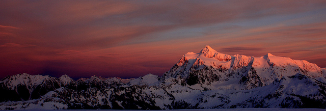 was that shot of Shuksan from Saturday night? We tried to get a similiar photo on Sunday night but without the small amount cloud cover it just didn't light up the same way as the previous night.