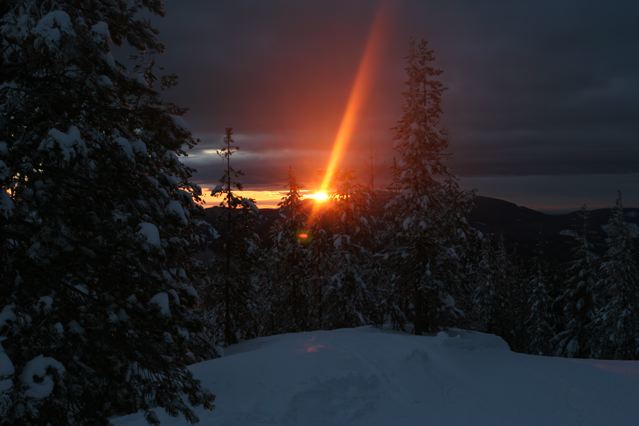 Started the year off with a little dawn patrol up into Mirror Lake. Started hiking from skibowl parking lot at 6am up through the resort. On top at 7:30am to watch the sunrise. Skied down to the lake on pretty terrible snow. Occasional boot top deep wind load to sudden inch deep crust on top of boot deep soft to bullet ice in places where the wind had blown the snow off. Climbed back up into skibowl just below the summit cliffs and skied back out to the car via skibowl. Beautiful morning to be out and fun to put the first runs on my New BD factor boots, but the snow was disappointing. All in all a nice way to start 2011.