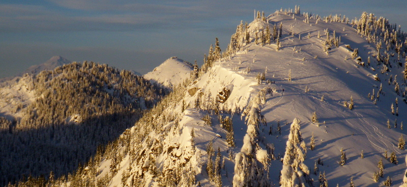 Good snow and windjacked snow available on all aspects. A serendipitous meeting with Chris and Mary atop a summit led to some mighty fine shaded turns we'd overlooked. Thanks again!