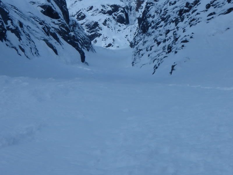 I stayed looker right for the whole affair. first 1/3, blower. second 1/3, more then enough on crust. then dust on crust, and finally exited on dust on debris. Fortunately the huge gouges the last slide left where nicely cross loaded and I was able to make it to the tow with out much pain.