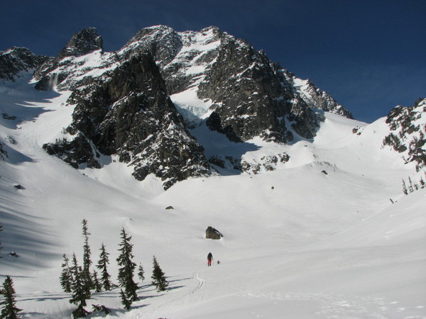 Seeing as the ice cliff gets no sun this time of year, we decided we had time to summit. So after ditching our skis at the false summit en route, we scrambled the rest of the way up beautiful Mt Stuart.