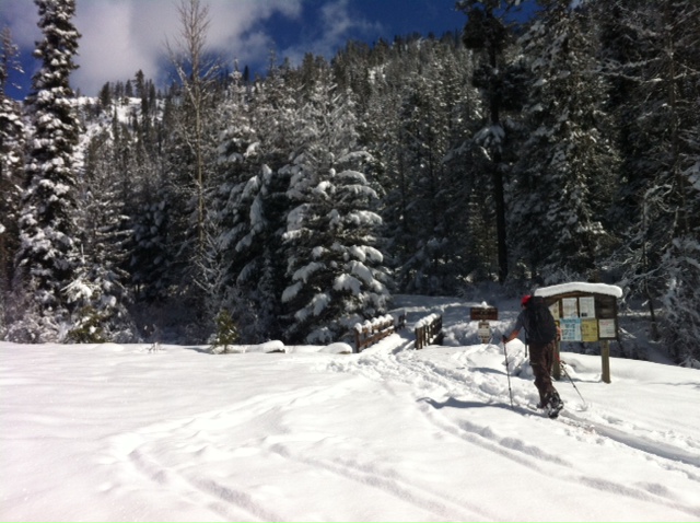 Fresh 6"+ deposit from Sat enabled continuous skinning up Bev Crk rd from the turnoff but most of it had melted upon return. Bean and Bev creeks, as well as the creek running down Judy's prominent S avy gulley are open but are easily rock hopped. Early sun created enough heat to produce afternoon clouds shielding the sun from further cooking of the new snow the rest of the day. NW facing gladed tree run off of Earl's SW ridge, and W facing gulley off the top of Earl were all stable boot top low density powder. Finished with a sun crusty skin up across the basin to the top of Mary and a sporty fun W facing gulley off the top to Bev Crk.