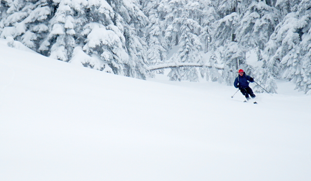 Mighty fine. Always want to go back for more, but the sun sets an unstoppable clock. One soft sluff ran on a 40+ degree slope, soft bed surface ~8-10" down, sheltered W-facing @5k.