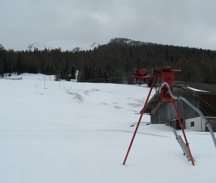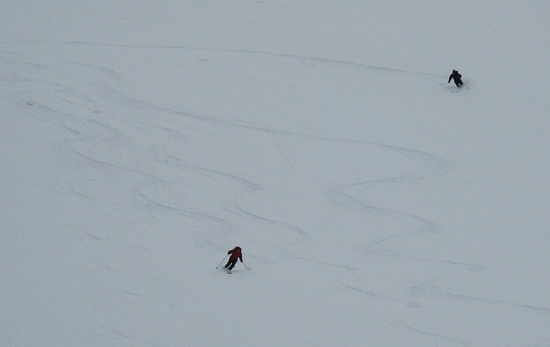 Despite the bad weather, as usual we could depend on Wolfi to give us a good idea to maximize the brief period of clearing around mid-day. Off to the last Austria autoroute exit before Brenner, then up small farm roads to 1550m or so. The farm at the road end even had their own little t-bar for learning to ski! Unfortunately the clearing was extremely brief, but it was good to get out for a couple hours to exercise the legs, and then head for yet another Gasthaus for rosti and strudel. 4" fresh powder on a firm base, good fun.