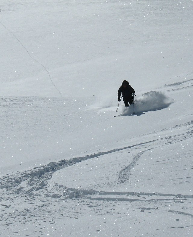 The day was bluebird, we found a north facing line with very light boot top powder for a couple thousand feet. Then the usual hour long stop on the way home for strudel and macchiatos, since it was Italy I had two for the price of one in Austria. It´s a tough life.
