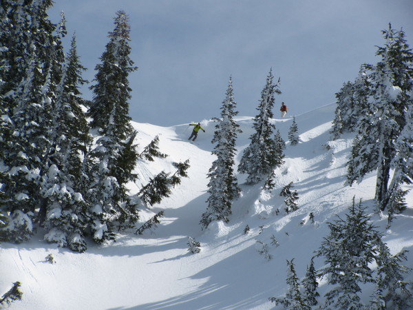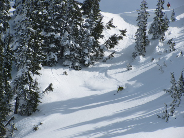 Glad you got those turns out there. Riding the chairs at Crystal I kept looking to see if someone was going to hit that up. I kept saying nobody has hit Pick yet. Finally in the afternoon you guys hit it, good job! Short, but sweet! Pretty rare to have Pickhandle on a weekend day without at least a few more folks out there. Especially powder on a sunny day in April!