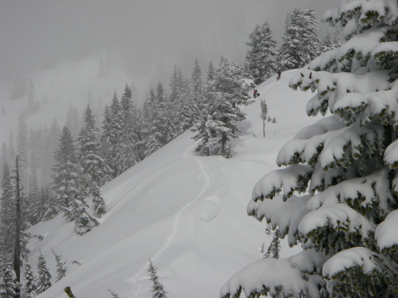 Hope you guys had fun too - from your downtrack, it looked like not enough of you ran down/snowshoe teled the powder! :). I liked your route up from the backside to the ridge - it was safer than mine today. Did you come in from the Talapus trailhead or Granite's?