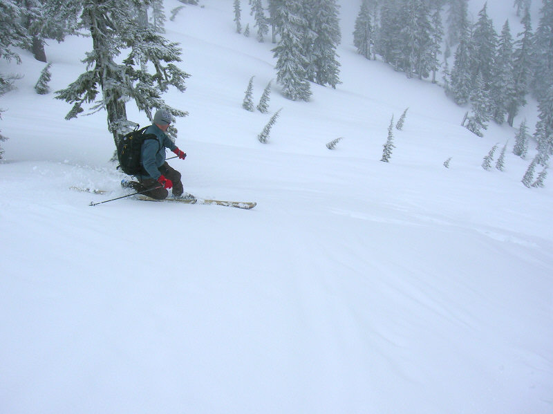 Rain down low and poor visibility up high thwarted our "Plan A" and "Plan B", respectively, in the Mt. Baker vicinity early this morning (we were optimistic for a big tour day despite the forecast); so Justin and I settled on a much less ambitious "Plan C": something above the rain, but below the clouds.