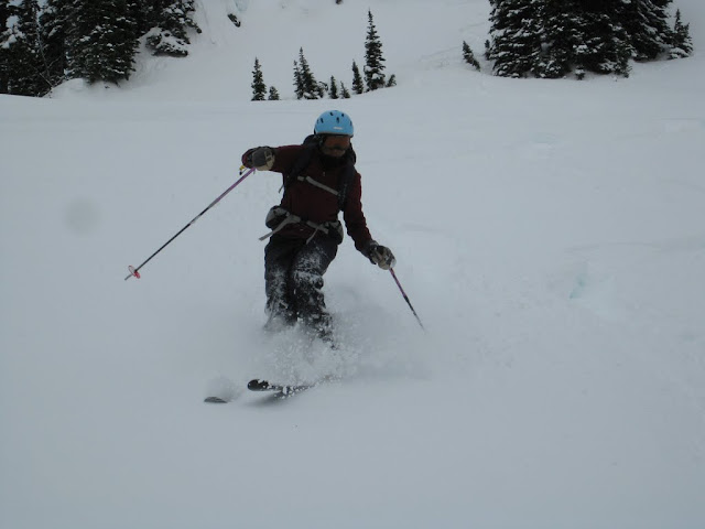 Here's one of Regine from last week (21 Dec, back bowl, no one else around except GaryV and Ed doing a tour down Mazama Ridge):