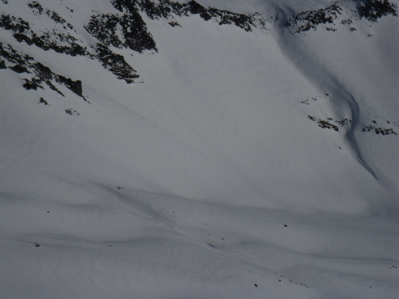 Fine day with smooth fast snow. Saw lots of people skinning out of Paradise. Chutes were skied by a number of folks. Will's ski woes continued, this time with a broken hardwire on his Switchback. A Cilogear strap and a zip tie kept things together, even on steeper terrain.