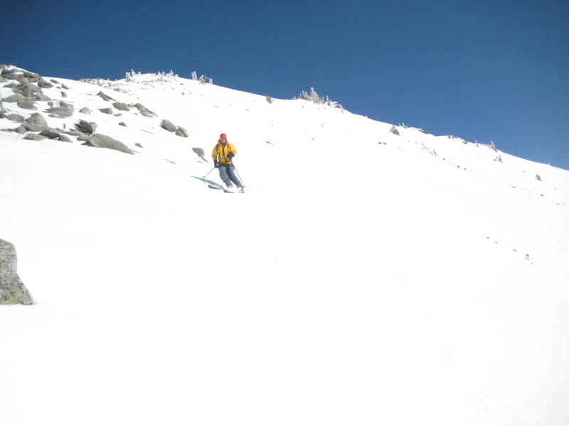 were you the guy who showed me his 5 lb skis? (about 12?). I was the solo guy with the red climbing boots. The wind was nasty on the ridge, but I crossed over and there was much less wind on the west side. There was even less wind on the top!