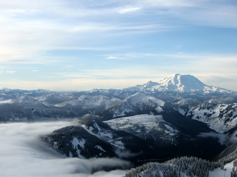 The slot skied nicely this morning. Lots of cold winter snow back there, all the way down to the basin on the N side of Snoq.