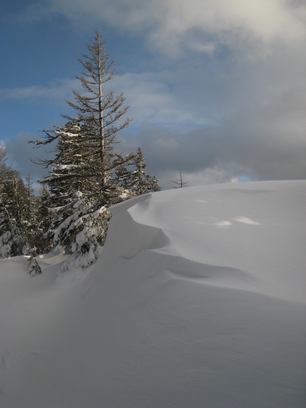 We observed wind sculpted snow with ~10 inch shooting cracks near the ridge and on south slopes and powder on sheltered N slopes. We also dug two pits in sheltered N facing spots and found 8 inches of low cohesion powder that failed cleanly on a crust about 20 cm down just under the shovel with no propagation and a second clean failure about 50 cm down that failed all the way across a 30x90cm column.