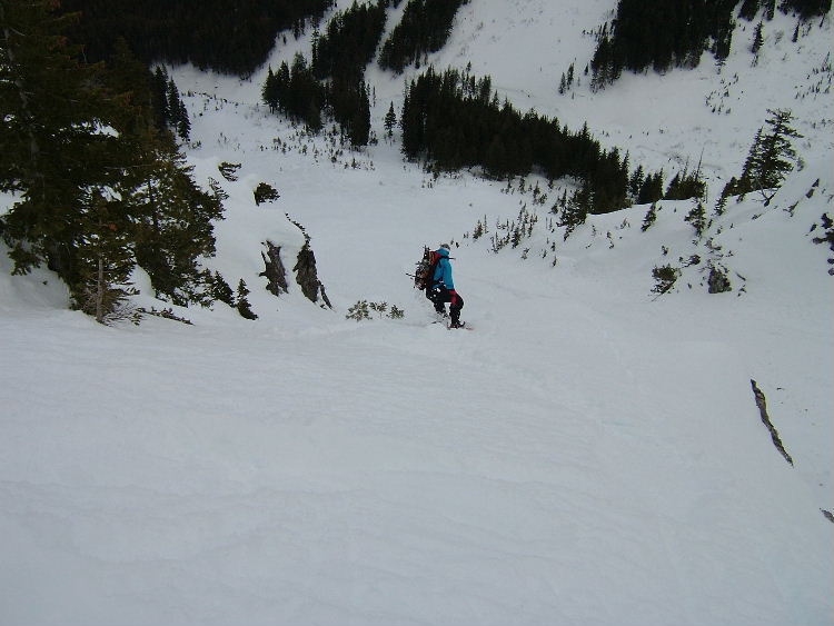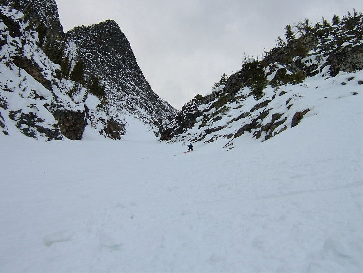 warm up evening run down the NE copper mt. couloir. good start to an almost 15K weekend in the Chelan Mts./Glacier Pk Wilderness. Photo of couloir taken from trip last year same time.