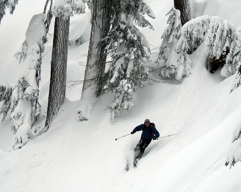 Toured up through the trees on Mt. Catherine out of Hyak and had a blast breaking trail through feet upon feet of Snoqualmie pow. We were pretty happy to find a safe route up not having been there before. One other group finally caught us just shy of the summit with another not far behind. No worries though since there turned out to be plenty of fresh for everyone.