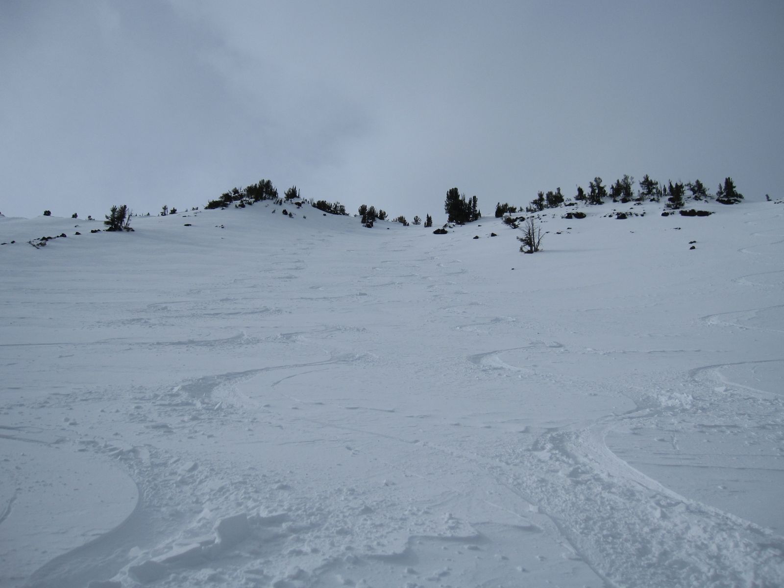 Scraped up what was left of any untracked snow at Wing Ridge over the weekend. Skied runs in Salt Creek drainage and Little Sheep divide. No spectacular skiing to report, conditions were variable... mostly breakable crust to just crust. Stable skiing conditions... a solid rain crust ~12" deep with lower density snow underneath worth mentioning.
