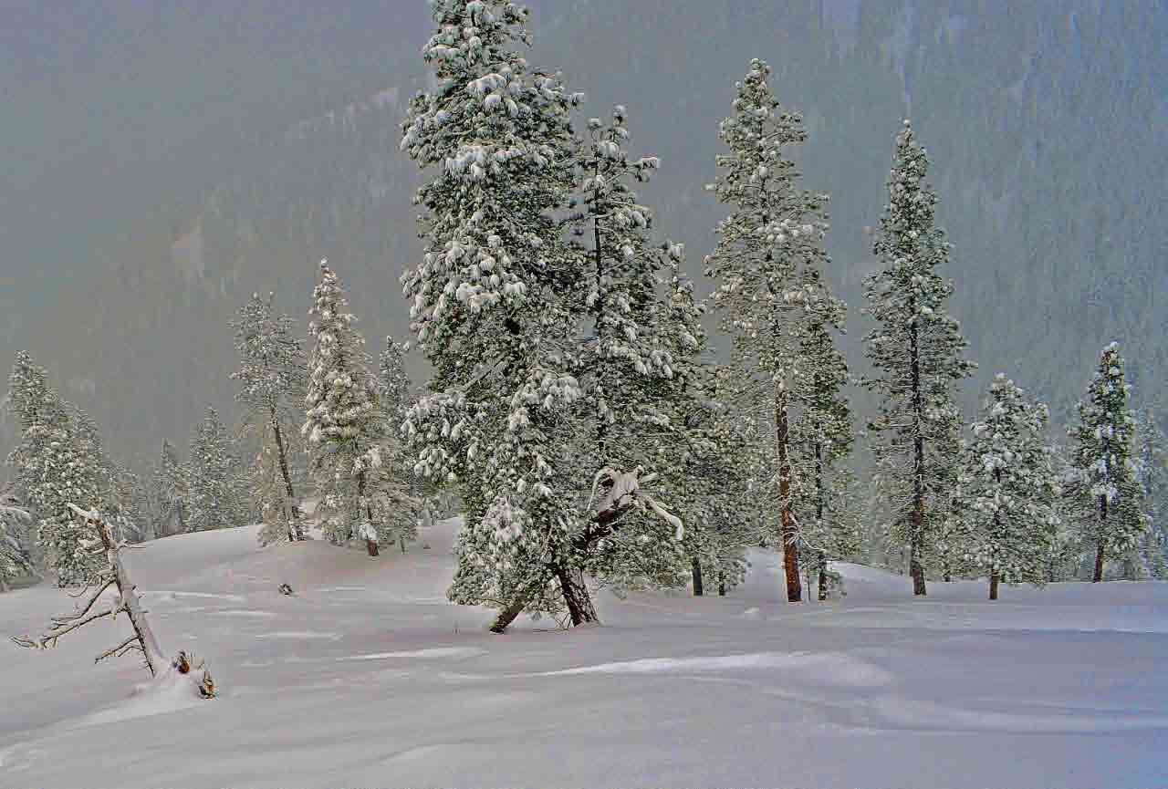 Today there was another 3-4" of light dry powder from the 3,000-4,000 foot level. Nearly all the stumps and rocks and logs are safely covered, and there is deep powder up high and still good skiing powder on smooth crust near the road. If you know the area, it's a great time to go. Hopefully it doesn't get too windy tomorrow! I stayed on ridges, and trees, and stayed off the steeper road cuts. I did find some dangerous windslab conditions on one ridgeline last week! The last picture shows my tracks from the day before with another few inches of snow in them. Obviously there's not much traffic up here!