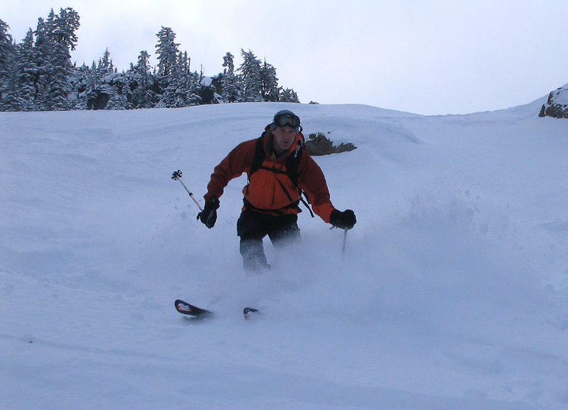 Not that it's important, Tony, but we'll need to call first tracks today. Left the lot by 6 am and down by 8 something. In fact, I think we saw you near Debbie's. We went down Schluct Chute in variable conditions, first time this year. Fun adventure.