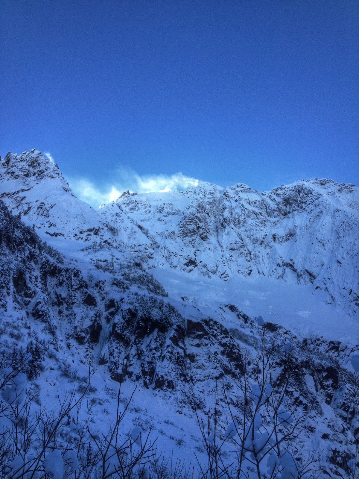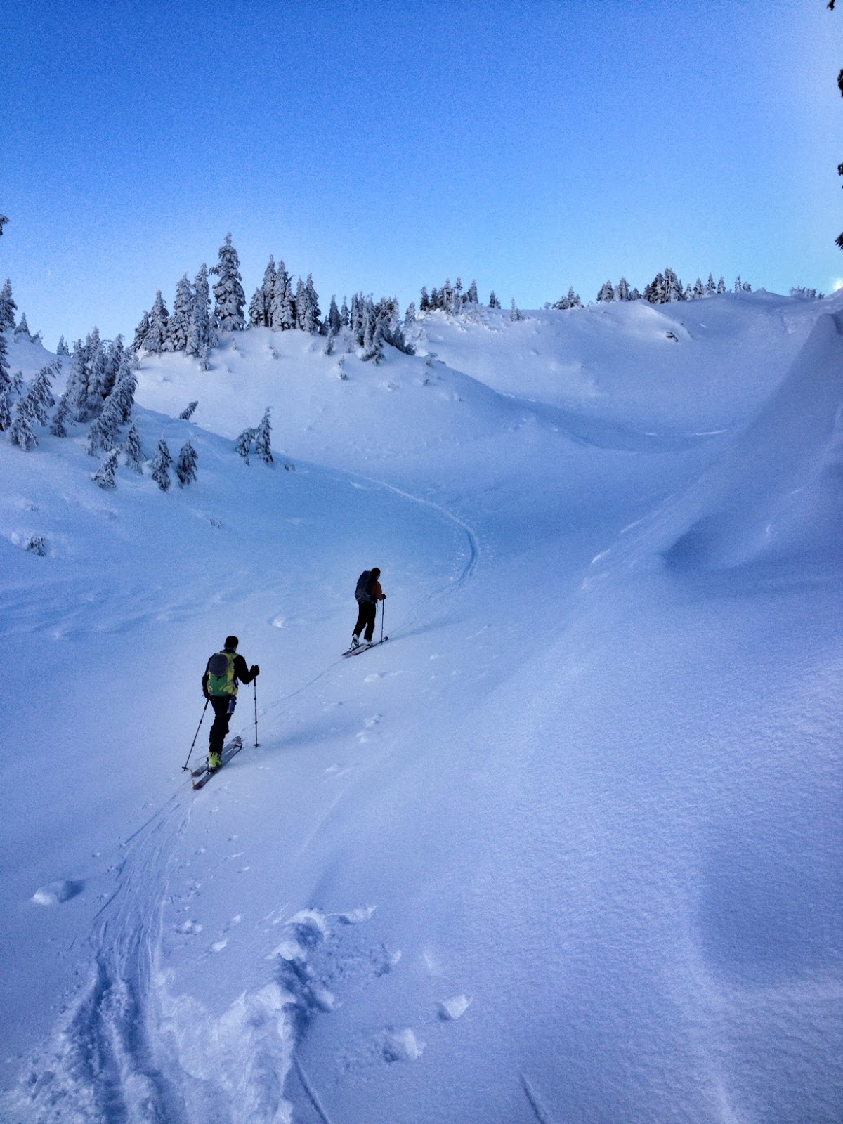 With the new snow I wanted to get out, but not with the million other powder deprived people. We decided to try out Sahale Arm to stay on mellower terrain with options to get steeper if stability was there.