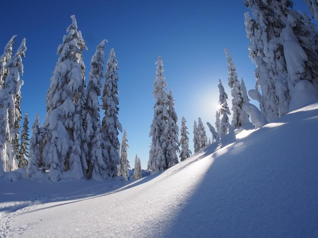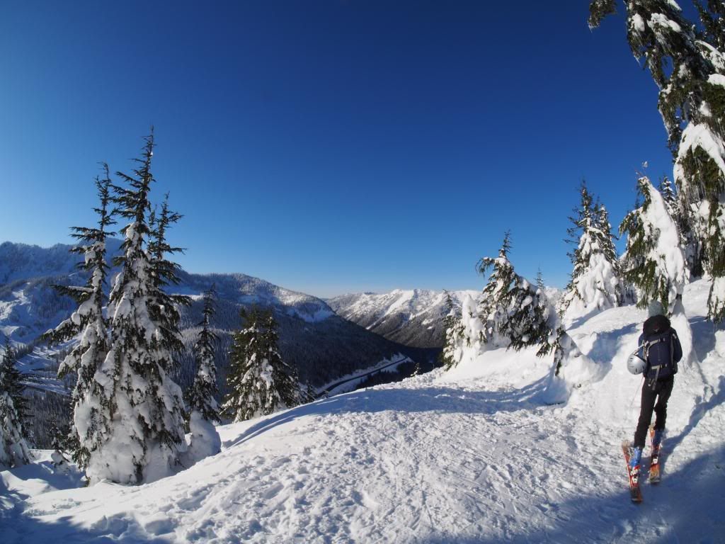 We saw mostly snowshoers today, only a few pairs of skiers. Though parts of the ridge are quite tracked out, we were pleased to still find some excellent untracked light powder on the north side of the ridge, maybe ~8" over firmer snow.
