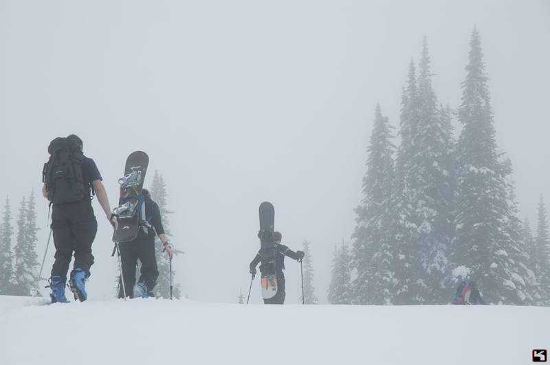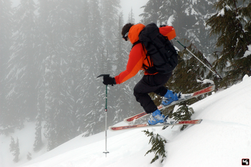 We opted for a day of shallow slopes and snowpack evaluation. It was foggy all day, and the Pineapple Express moved in, so it was warm. We found a few layers, but it seemed that the snow was beginning to settle.