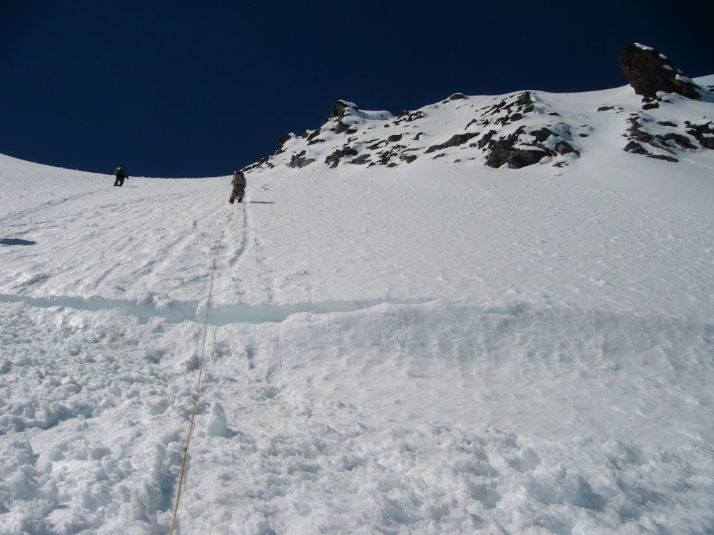 Crossing the schrund on NE face: