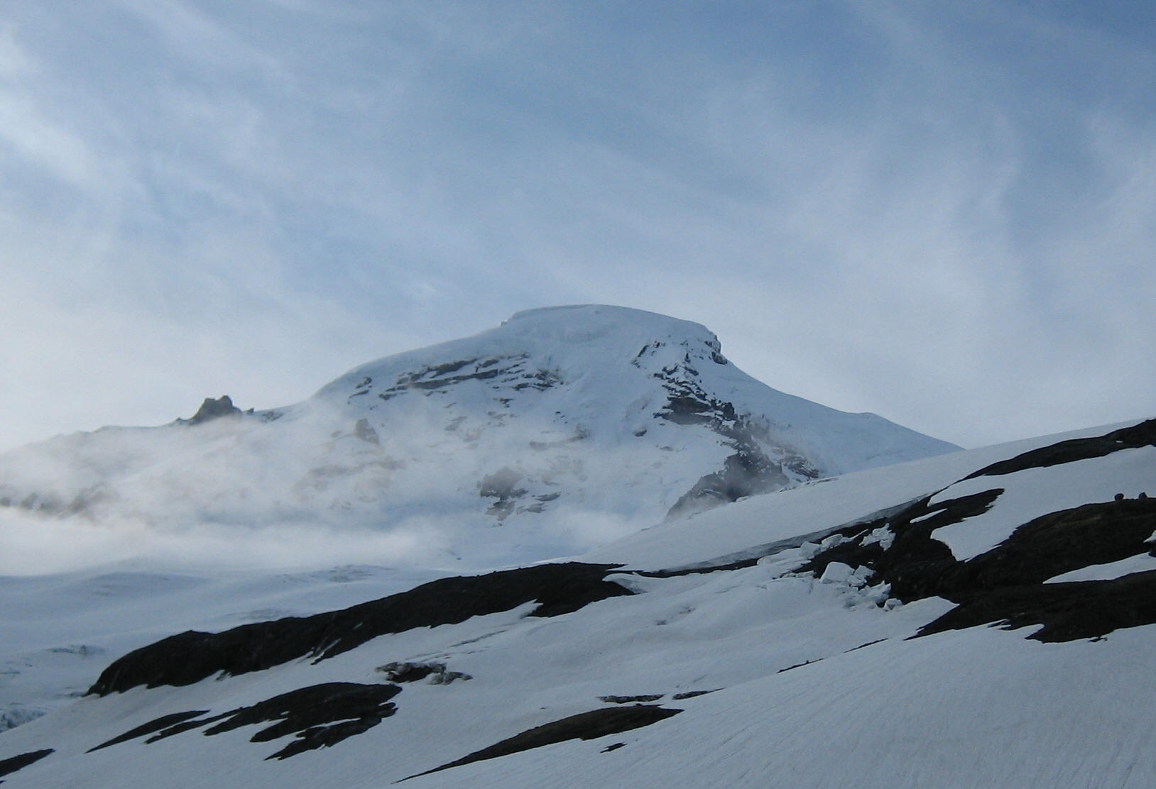 Left the trailhead at 5:30am. Trail up towards heliotrope ridge mostly snow free until treeline. Got up above the clouds by the time we hit the Coleman glacier and the clouds kinda chased us up the mountain the rest of the way. Coverage on the Coleman is excellent, no sketchy snowbridges on the route.