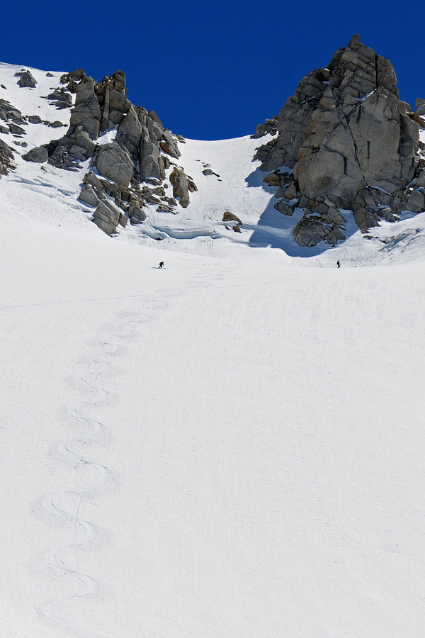 On Sunday we wandered above the Conness lakes, then found a scenic high camp near the Conness Glacier. We skied the small glacier and found great corn. Unfortunately, the snow is melting fast, but if you're willing to walk a little, there is still plenty of low hanging fruit to be had, even come August and September..... :)!