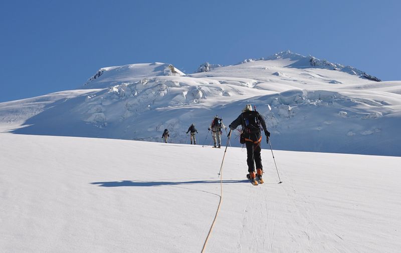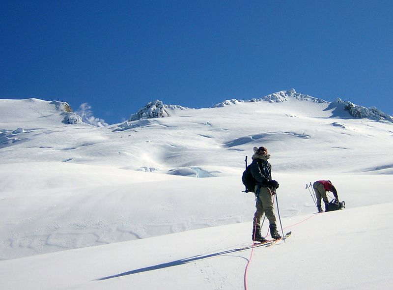 We went up roped up. Crevasses are opening up and perhaps that is why snowmobiles were staying low.