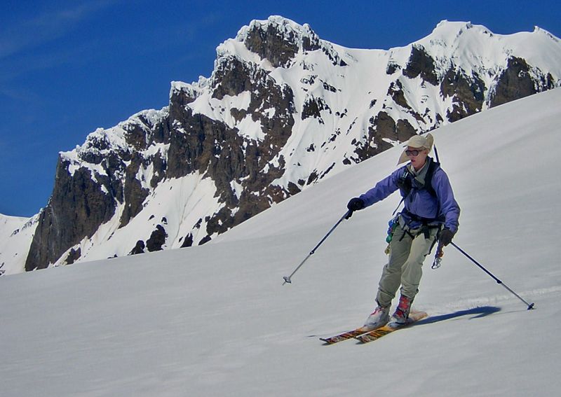 Wow what a day ! cool the night before and nice wind all day kept the snow in super shape and cut down on the sweating. 6 of us in all .Dave, Dave ,Ken Jeff Mike and myself started around 330 am from 1/4 mile below Shrieber campground. Jeff ,Ken and Mike summited The rest including myself with blisters stopped at the crater.