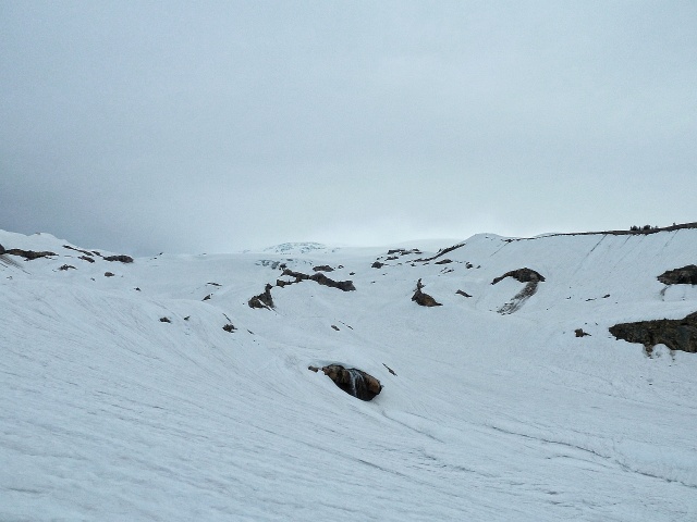I and Jeff started hiking at 6am from the Schreibner's meadow TH and crossed the river on hiker's trail although in retrospect we could have skinned from about 1 mile up the trail (on the right side on mostly connected snow patches, I suspect now melting fast). We hooked up to the continuous snow just below the morraine, and skinned up to the toe of Easton. Here the weather kicked in (while to the south we could see sunny peaks) so we gladly joined the climber's boot trail and soon were skinning up past throngs of descending climbers. Warm temps and slushy snow. At about 6500 there was partial clearing but from then on we were in a whiteout and rain, and bailed at about 8000. Ski down was in very low visibility and from about 6000 down it actually was fun and nice corn :D. After some shenanigans descending and crossing the river we were back at the car at about 3 pm. Disappointed we didn't make the summit but it was a nice day nonetheless in this beautiful corner of WA state.