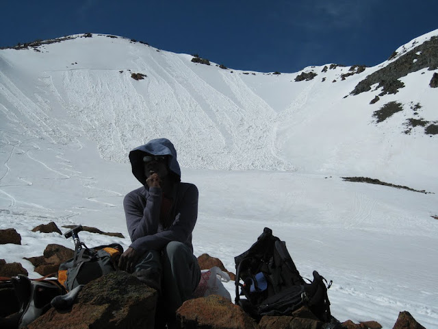 Fun day! John's approach (which I had previously spied on the map and intended to explore someday) is a more aesthetic ascent line than De Roux Creek. Nice way to start the morning. Thanks for showing us the way, John.