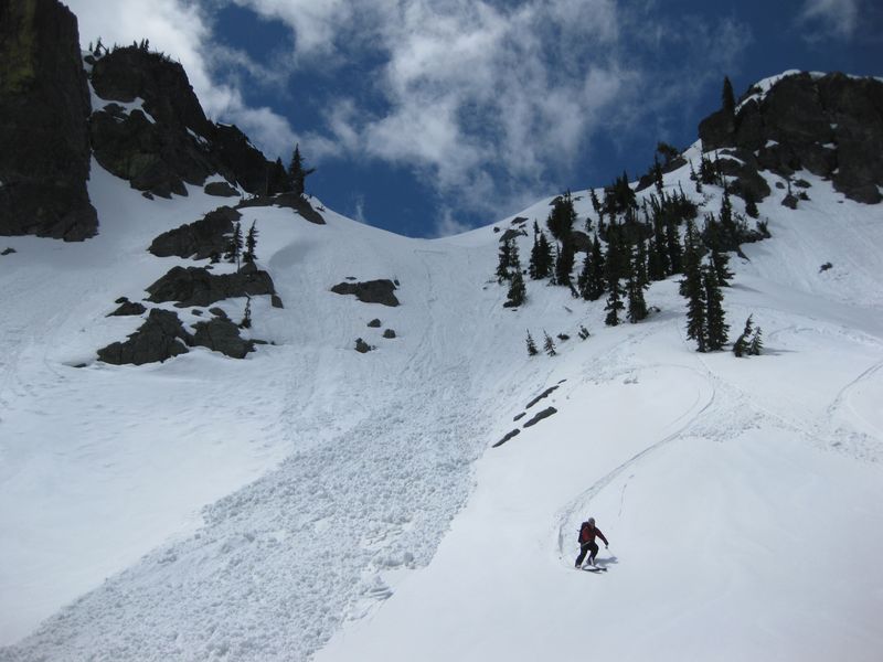 no probem John. We truly appreciate good slope testers. Gotta tell you though, the rivers that started running down that face had us a bit freaked out. We ended up skiing into the east bowl a bit then climbing to the lower entrance to the southeast face. We only added to the mess, but it actually skied fairly well considering. The cleaned paths were decent until the big piles at the bottom.